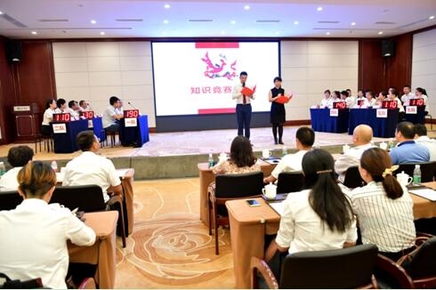 知識(shí)競(jìng)賽活動(dòng)的主題是擁抱新時(shí)代、踐行新思想、創(chuàng)造新業(yè)績(jī),目的是為了進(jìn)一步引導(dǎo)公司廣大黨員干部更加主動(dòng)、更加自覺、更加深入地學(xué)習(xí)好、宣傳好、踐行好習(xí)近平新時(shí)代中國(guó)特色社會(huì)主義思想,也是積極推動(dòng)落實(shí)黨的十九大精神和“黨建強(qiáng)基”專項(xiàng)行動(dòng)的一項(xiàng)具體舉措。國(guó)控四川7個(gè)黨支部共選拔出21名選手組成7支代表隊(duì)進(jìn)行競(jìng)賽。比賽環(huán)節(jié)設(shè)有必答題、搶答題、風(fēng)險(xiǎn)題、附加題四個(gè)環(huán)節(jié),知識(shí)競(jìng)賽在緊張激烈氛圍中進(jìn)行。經(jīng)過激烈的競(jìng)爭(zhēng)角逐,評(píng)選出團(tuán)體和個(gè)人前三名。