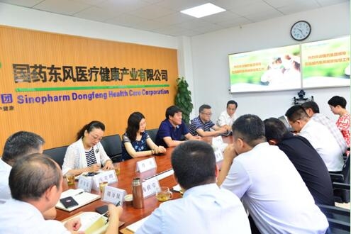 國藥集團戰略與品牌管理部主任蔣昕、國藥東風董事長馬讓、總經理何宏生以及漢江集團總經理何曉東、漢江集團醫院等單位相關負責人和業務骨干參加了調研。(集團戰略與品牌管理部供稿)