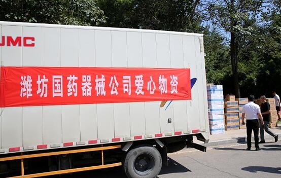 2018年8月19日,山東濰坊壽光地區(qū)受臺風(fēng)“溫比亞”侵襲,遭遇多年未遇的洪澇災(zāi)害,彌河沿岸洪水倒灌,造成大量農(nóng)田被淹、蔬菜大棚坍塌,群眾被迫轉(zhuǎn)移。災(zāi)難面前,國藥器械山東公司立即啟動應(yīng)急響應(yīng),向災(zāi)區(qū)人民奉獻(xiàn)愛心。