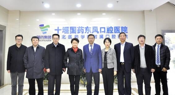 石晟怡一行先后前往國藥東風口腔醫院、總醫院、花果醫院、茅箭醫院進行現場調研并聽取了醫院工作匯報。何宏生從國藥東風經營改善、產業協同、合規建設、黨建文化四個方面對一年來發展情況進行匯報。