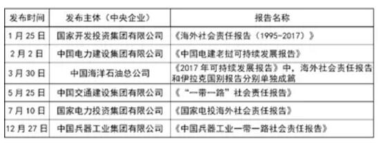表2:中央企業(yè)2017年發(fā)布海外社會(huì)責(zé)任專題類和國別類報(bào)告列表