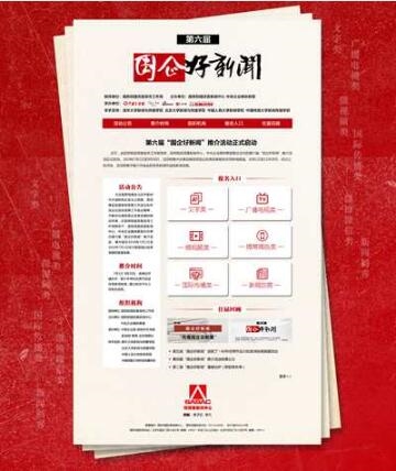 近日,由國務院國資委宣傳工作局指導,國務院國資委新聞中心、中央企業媒體聯盟聯合主辦的第六屆“國企好新聞”推介活動正式啟動。2019年7月1日至9月30日,活動將集中征集反映國資國企改革發展相關優秀新聞報道。10月1日至12月30日,經過三輪評選,活動將集中推介評選出的優秀新聞作品和新聞創客。