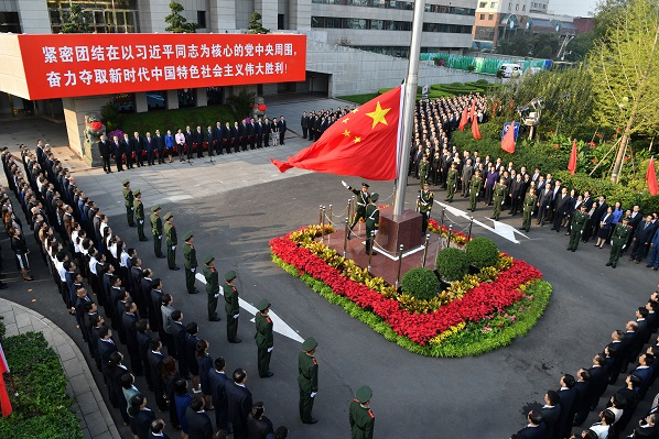 9月29日,國資委機關隆重舉行升國旗儀式,慶祝中華人民共和國成立70周年,全體干部職工深情高唱國歌,為偉大祖國送上最美好的祝福。國資委黨委書記、主任郝鵬出席并講話。升國旗儀式由國資委副主任、黨委委員趙愛明主持,國資委黨委委員、副部長級干部、二線老領導,秘書長、總會計師、副秘書長,駐委紀檢監察組、各廳局和直屬事業單位全體干部職工參加。