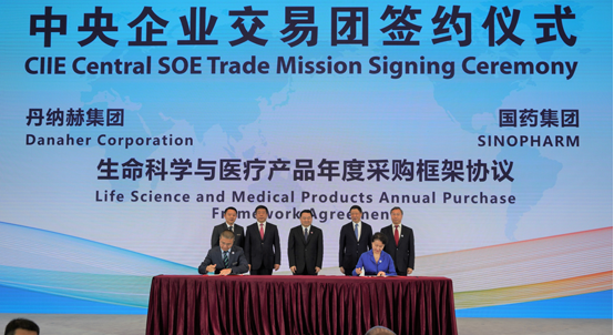 11月6日上午,國(guó)務(wù)院國(guó)資委以“開(kāi)放合作、創(chuàng)新發(fā)展”為主題主辦了中外企業(yè)合作論壇。國(guó)藥集團(tuán)董事長(zhǎng)、黨委書(shū)記劉敬楨,副總經(jīng)理石晟怡應(yīng)邀出席。論壇簽約環(huán)節(jié),共有15家央企進(jìn)行現(xiàn)場(chǎng)簽約。在國(guó)資委黨委書(shū)記、主任郝鵬,上海市委副書(shū)記、市長(zhǎng)應(yīng)勇,國(guó)資委副主任任洪斌,以及國(guó)藥集團(tuán)董事長(zhǎng)、黨委書(shū)記劉敬楨和丹納赫中國(guó)區(qū)總裁彭陽(yáng)的見(jiàn)證下,國(guó)藥集團(tuán)副總經(jīng)理石晟怡與丹納赫代表簽署了生命科學(xué)與醫(yī)療產(chǎn)品年度采購(gòu)框架協(xié)議。