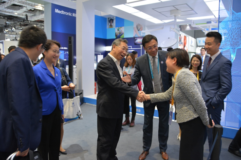 本屆進博會醫療器械及醫療保健展區一位難求,但是全球醫療器械最大企業美敦力占據醒目位置。11月6日,美敦力展位迎來國藥集團董事長、黨委書記劉敬楨,國藥集團副總經理石晟怡,國藥控股副總裁、國藥器械總經理李楊一行。美敦力介紹了最新技術進展,現場展示了介入心臟起搏器、O型臂術中影像系統、脊柱手術機器人等高科技產品。7日下午,雙方現場簽署醫療器材產品采購“大單”。兩大集團公司強強攜手,為中國引進世界先進的醫療設備和器械,服務中國醫療衛生事業,為增進中國人民健康保駕護航。