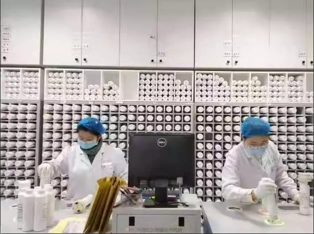 位于湖北省中醫院光谷院區的華潤三九智能化中藥房項目的調劑員們,日以繼夜地分配急需的醫療物資。