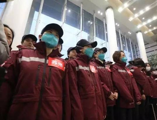 1月28日清晨7:30,來自蘇州大學附屬第二醫院(核工業總醫院)的6名醫護人員集結,前往武漢支援疫情救治工作。