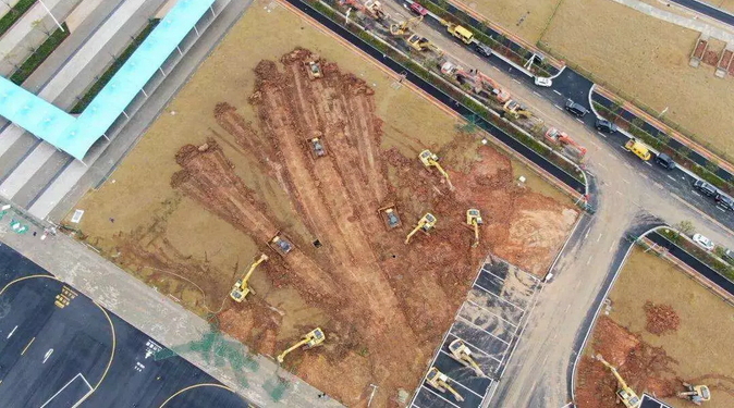 火熱的雷神山醫院建設現場。