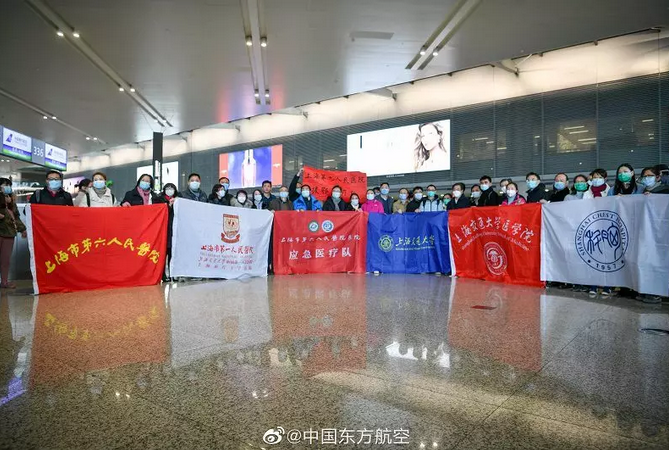 1月28日17時53分,東航第九架包機從上海再次起飛,載著上海第三批援鄂醫療隊共148人及醫療救護物資803件11.7噸,緊急馳援武漢。