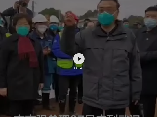 1月27日上午11時30分,李克強總理來到武漢火神山醫院施工現場考察,慰問奮斗在一線的施工人員。