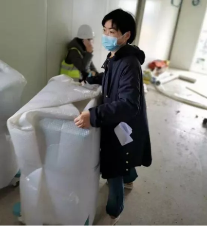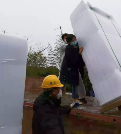 國藥衛勤公司質量部負責人葉麗娟得知醫院急需工作人員后,放棄休假,主動請纓從安徽老家開車返回武漢抗疫一線,并在醫院現場組織九人的工作團隊。他們中有有青年志愿者,有貨車司機,有裝修工人,甚至連環衛工人都參與到裝卸和搬運的工作中。他們不辭辛苦,不計報酬,在庫房和醫院間連續往返工作24個小時,徹夜裝卸搬運貨物五百余件。任務緊急,人力不足,工地現場沒有叉車等運輸工具,甚至連道路都尚未鋪好。在這種環境下,大家硬是肩挑手扛,用人力一步步把上百斤的醫療物資扛到病房。