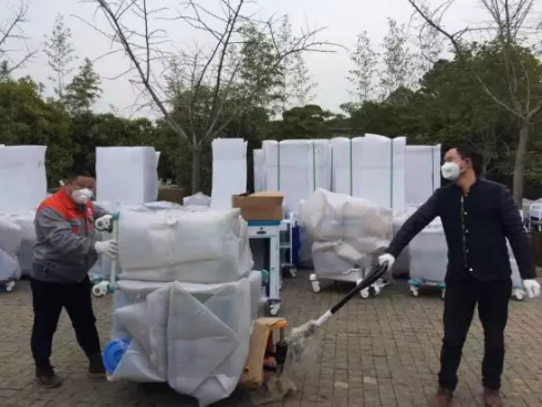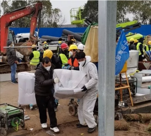 2月1日-2日,國藥衛勤服務保障(武漢)有限公司(以下簡稱“國藥衛勤”)向武漢火神山醫院供應的首批醫療物資運抵工地,并分批轉運、安放到新建病房里。這批醫療物資總價值約六百多萬元,其中包括一臺“救治新冠肺炎神器”的ECMO體外膜肺氧合器。