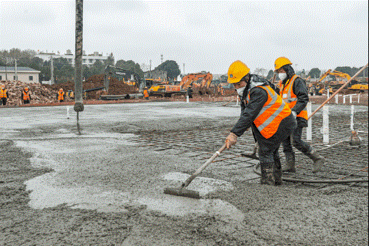 僅用一天時間,大部分土地平整工作完成!鋼筋、管材陸續進場。