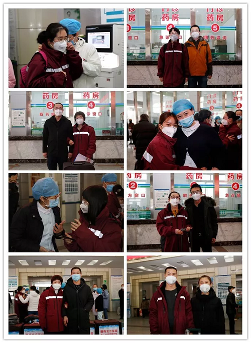 2020年2月20日早9點,國藥北方醫院第二批援鄂醫療隊12名隊員,同其他四家兄弟醫院23名隊員一起,從包頭出發,不遠千里,馳援武漢。