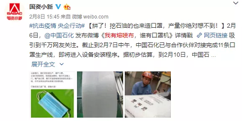 中國石化:我有熔噴布,誰有口罩機?