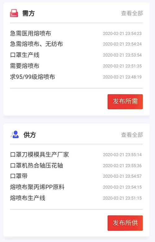 2月21日上午,企業復工復產供需對接平臺上線,眾多在疫情期間有心為生產緊缺防護物資出力,卻被關鍵零部件缺乏、上下游產業鏈阻斷、貨物積壓等問題困擾的企業,紛紛登錄,發布自己急需或是能提供的物資,后臺工作人員電話被打爆。
