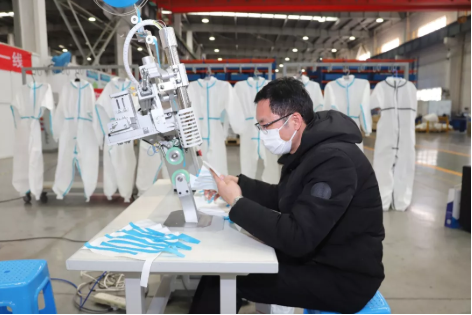 作業題目:央企首臺醫用防護服壓條機研制成功投產