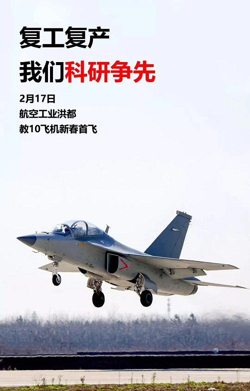 2月17日,航空工業洪都完成教10飛機的新春開飛。