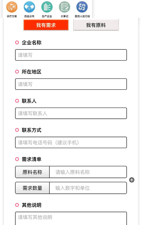 在「原料供需在線填報」頁面,您可以發(fā)布供應(yīng)和需求信息,平臺將完成審核工作并協(xié)助對接。