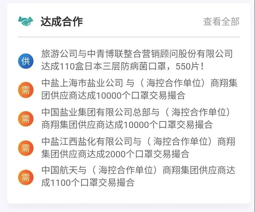 平臺充分發揮中央企業上下游生態圈協同優勢,調動相關國資國企物資生產技術能力和物資儲備庫存,并積極吸引社會企業提供疫情防控物資、原材料、生產設備等資源渠道,推動全社會信息廣泛共享,實現線上無縫銜接、線下精準對接、高效達成合作,全面助力防疫防護物資生產供應和企業復工復產。