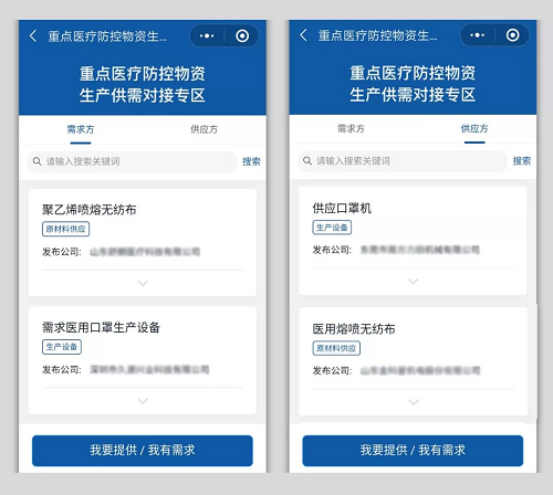 企業復工復產供需對接平臺,是為破解廣大企業復工復產過程中的物資供需不匹配、信息不對稱難題,由國務院國資委科創局、國資委新聞中心指導,國務院客戶端小程序接入并在疫情防控和復工復產服務專區開設入口,國網電商公司青年志愿者提供技術支持,為企業提供供需信息發布、貨源及服務信息展示、供求信息撮合對接等服務的公共服務平臺。