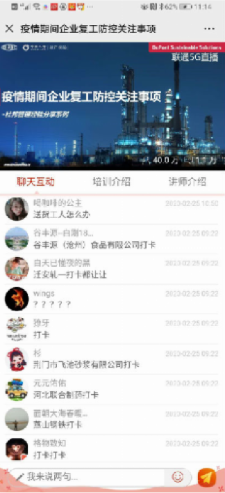 2月25日上午,在全國企業陸續復工復產之際,中國聯通政企BG利用云公司開發的“云視頻(智享版)”產品,助力混改合作伙伴中國人壽舉辦了針對安責險客戶的疫情期間安全復工復產在線公益培訓。全國2100余家工商企業共計40余萬人次參加了此次在線直播培訓。云公司“云視頻(智享版)”產品為此次培訓提供全國范圍內高質量的在線會議服務,在助力疫情防控和保險企業數字化轉型的同時,也讓更多的企業了解到了聯通的創新服務,感受到了聯通的企業擔當。