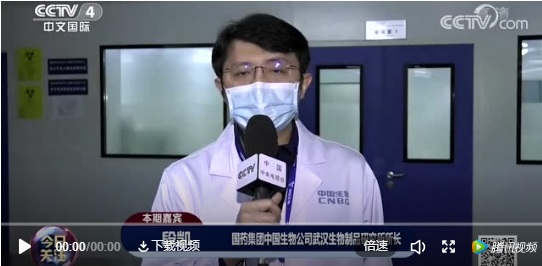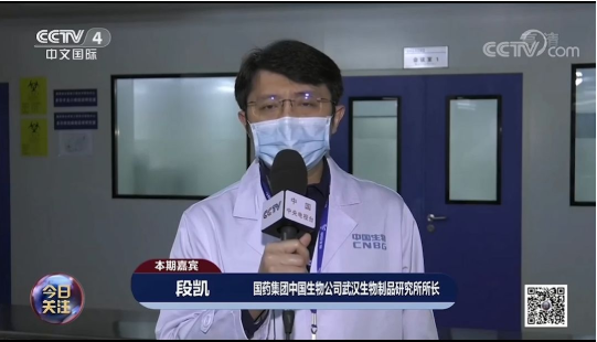 3月7日,中央電視臺中文國際頻道(CCTV-4)《今日關注》欄目連線國藥中國生物武漢生物制品研究所所長段凱,就血漿療法最新情況進行介紹。