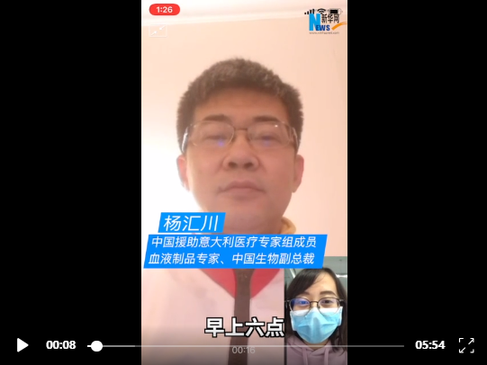 新華網(wǎng)北京3月15日電(記者李由 陳杰)由國(guó)家衛(wèi)生健康委員會(huì)和中國(guó)紅十字會(huì)共同組建的抗疫醫(yī)療專家組一行9人12日抵達(dá)意大利首都羅馬。專家組開(kāi)展了哪些工作?觀察到哪些最新情況?未來(lái)將如何安排行程?新華網(wǎng)記者于當(dāng)?shù)貢r(shí)間15日早上6點(diǎn)20分視頻連線了專家組成員、血液制品專家、中國(guó)生物副總裁楊匯川。