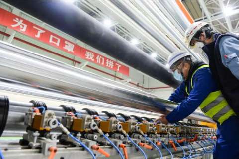 除了口罩機(jī)的研發(fā)生產(chǎn),中央企業(yè)還在口罩增產(chǎn)方面,開展了廣泛的資源整合,讓生產(chǎn)要素的利用效率更高。