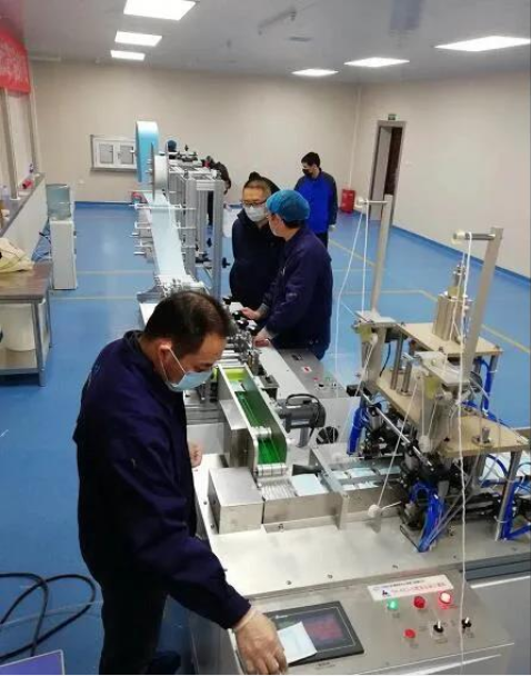 中國(guó)石油黨員突擊隊(duì)技術(shù)人員正在調(diào)試口罩生產(chǎn)線工藝