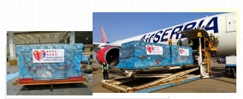 這架懸掛中塞兩國國旗的A330飛機上搭載的正是國藥國際經過數日不眠不休、幾經籌措的共計16噸、120立方米的中國捐贈塞爾維亞醫療防疫物資和醫療器械,其中包括呼吸機、口罩、防護服等。這些物資,在世界防疫形勢日趨嚴峻的今天,顯得彌足珍貴。