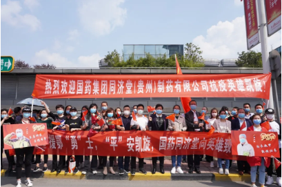 白衣執甲,逆行出征。春暖花開,平安歸來。3月26日下午,最后一批馳援湖北的貴州醫療隊返程,387名隊員帶著鄂州人民的不舍與感激,搭乘專機抵達貴陽龍洞堡機場,迎來了家鄉同胞的熱情歡迎和深深敬意。凱旋的隊伍里有我們同濟堂制藥的兩位英雄——覃方勇、付守平。國藥集團同濟堂制藥黨委書記、總經理朱鶴率公司經營班子成員、各黨支部代表、員工代表前往機場迎接。