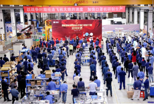 10天研制首臺套平面口罩機并完成壓力測試,20天生產(chǎn)100臺套……經(jīng)過30天奮戰(zhàn),3月8日下午5時整,國機集團下屬國機智能第100臺口罩機在廣州下線。