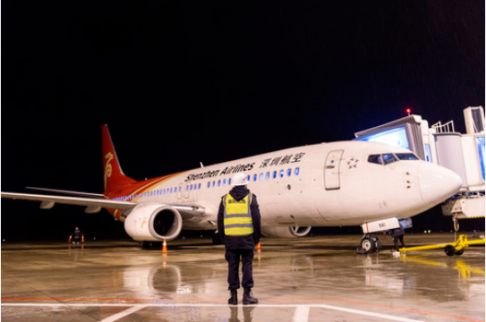 3月29日,在湖北襄陽劉集機場,監(jiān)護員對飛機進行監(jiān)護。當日,湖北省除武漢天河機場外其他機場國內(nèi)客運航班恢復。