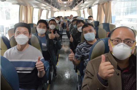 3月18日,中國能建葛洲壩由湖北宜昌發(fā)車,運送93名職工返回廣西田西高速項目。返崗人員中有不少是曾堅守在社區(qū)防疫一線的志愿者,他們從疫情防控的戰(zhàn)場凱旋而歸,又馬不停蹄地踏上項目復工復產(chǎn)的第二戰(zhàn)場。