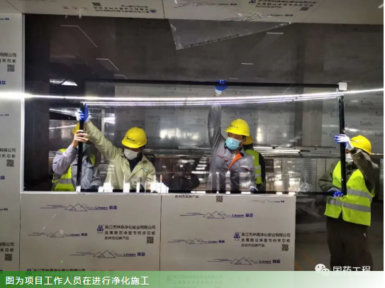 圖為項(xiàng)目工作人員在進(jìn)行凈化施工