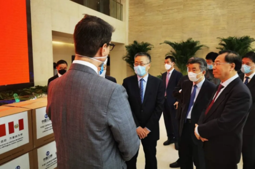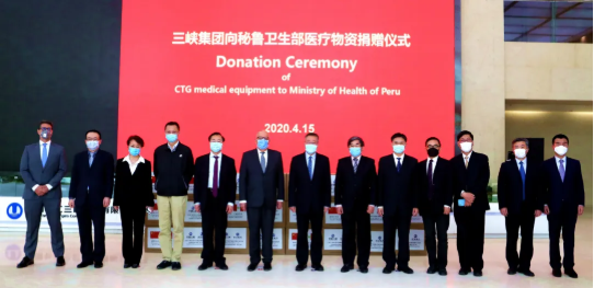 4月15日上午,國藥集團董事長、黨委書記劉敬楨,國藥集團副總經理、國藥國際董事長石晟怡,國藥國際所屬國藥外貿總經理丁維佐,國藥集團董事長秘書魯保才等共同出席三峽集團向秘魯捐贈醫療物資儀式。