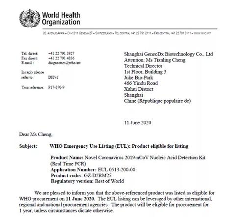 EUL是WHO資格預(yù)審應(yīng)對(duì)緊急公共衛(wèi)生狀況的一種機(jī)制。通過WHO應(yīng)急審批的產(chǎn)品,將被列入到WHO的產(chǎn)品清單,為世界衛(wèi)生組織、聯(lián)合國機(jī)構(gòu)及其他國家或地區(qū)的診斷產(chǎn)品采購提供依據(jù)。