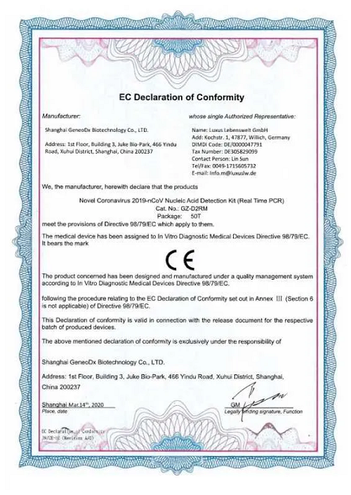 此前,中生捷諾已完成了該核酸檢測(cè)試劑盒的歐盟CE認(rèn)證。4月初,中生捷諾所屬荷蘭分子診斷子公司PathoFinder的SARS-CoV-2檢測(cè)試劑,RealAccurate Corona-plus PCR Kit 獲得歐盟CE認(rèn)證,該試劑可同時(shí)檢測(cè)新型冠狀病毒SARS-CoV-2和中東呼吸道綜合征病毒MERS。