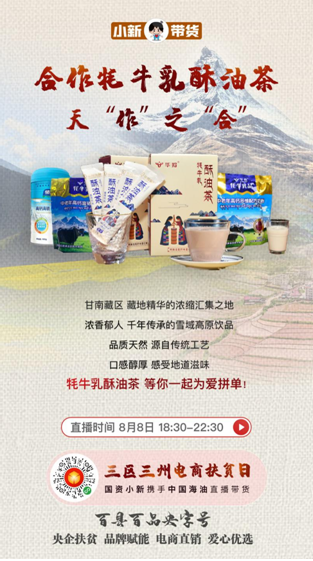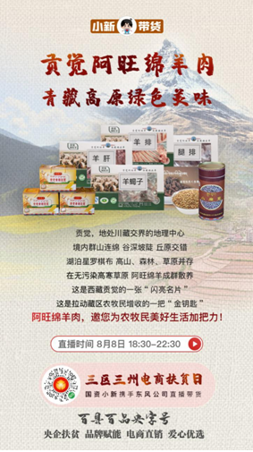 “百縣百品央字號”暨“小新帶貨”融媒體扶貧行動已經成功舉辦12場,而本場是首次主題專場活動,聚焦8家中央企業在“三區三州”的8個定點扶貧縣,旨在幫助“三區三州”貧困地區打開產品銷路、推廣特色品牌,同時講述中央企業定點扶貧的精準舉措和動人故事。