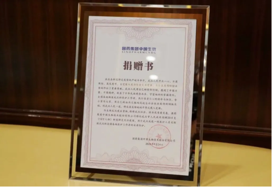 在9月24日召開的第十三屆中國生物產業大會上,國藥集團中國生物宣布向武漢市人民政府捐贈20萬支(10萬人份)新冠肺炎滅活疫苗,用于武漢抗疫一線醫護人員及馳援武漢的全國各地醫護工作者的自身防護,支持武漢疫后重振,保障武漢社會、經濟高質量發展。