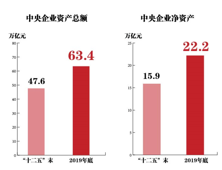運(yùn)行更穩(wěn)、實(shí)力更強(qiáng)——來自國務(wù)院國資委的數(shù)據(jù)顯示,截至2019年底,中央企業(yè)資產(chǎn)總額達(dá)63.4萬億元,比“十二五”末增加15.8萬億元,增長(zhǎng)33.2%;凈資產(chǎn)為22.2萬億元,比“十二五”末增加6.3萬億元,增長(zhǎng)39.9%。