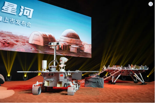 ▲“天問一號(hào)”1:1著陸平臺(tái)和火星車(點(diǎn)擊圖片了解詳情)