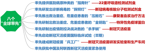 ——體現了國藥速度,48小時完成火神山醫院藥房、庫室從籌建到投入運營;一周之內完成ECMO設備從提出需求、簽訂合同到航空接力、清關運抵的國際采購奇跡;60天建成新冠疫苗生產車間;98天研發出新冠滅活疫苗。