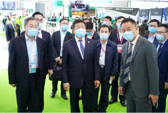 11月5日上午,國務院國資委任洪斌副主任在國藥集團董事長劉敬楨陪同下巡視第三屆進博會醫療器械及醫藥保健展區。