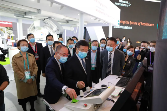 國藥集團合作伙伴西門子醫療、美敦力、復星醫療有關負責人在各自展位向任洪斌副主任和劉敬楨董事長詳細介紹了最新產品和技術。