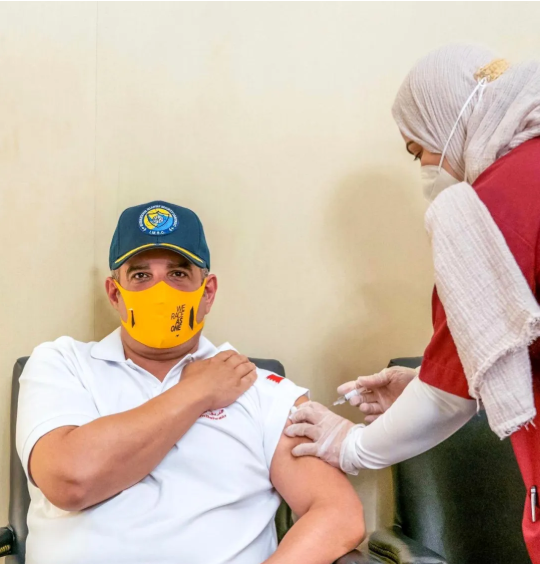 9月19日,阿聯酋衛生和預防部部長阿卜杜勒·拉赫曼·默罕默德·艾爾·歐維斯接種疫苗。