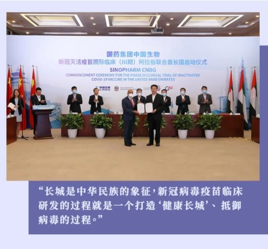2020年7月15日,就在長城團隊到達阿聯酋的一周之內,阿布扎比衛生部長成為首位接種了國藥中國生物疫苗的志愿者。是什么讓這位政要對中國朋友如此信任,朱京津回憶說,“當會見部長時,他主動提出要第一個接種疫苗。他認為,在阿聯酋開展Ⅲ期臨床試驗必定充滿挑戰,我信任國藥集團的產品,愿意當這個‘第一人’。”