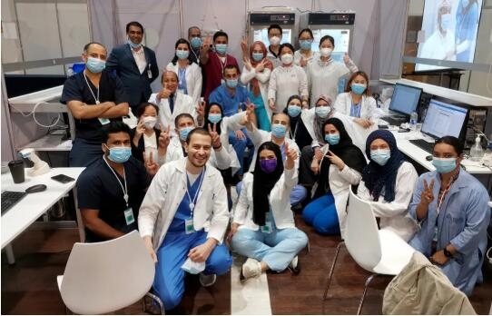 “長城”項目團隊在阿聯酋和巴林都經歷了初期入組人數達不到預期的困難情況,但隨著工作逐步推進,成績突飛猛進。2020年7月22日,阿布扎比國家展覽中心(ADNEC)接種現場啟用;7月30日,第二批疫苗抵達阿布扎比,并完成入庫;經過近兩周的磨合,8月4日,兩支小分隊分別前往阿聯酋沙迦酋長國和巴林王國開展新接種現場開設相關工作;9月3日,埃及小分隊出征,開展埃及接種現場開設的相關工作??