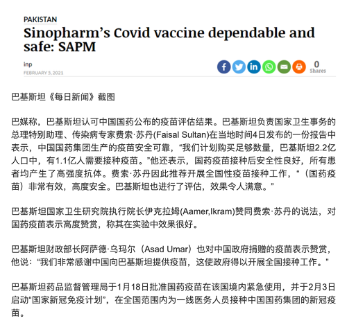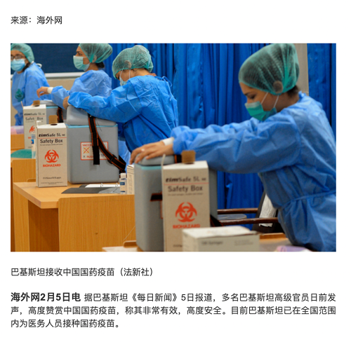 【人民日報海外網】巴基斯坦多位高官發聲稱贊中國國藥集團疫苗安全可靠